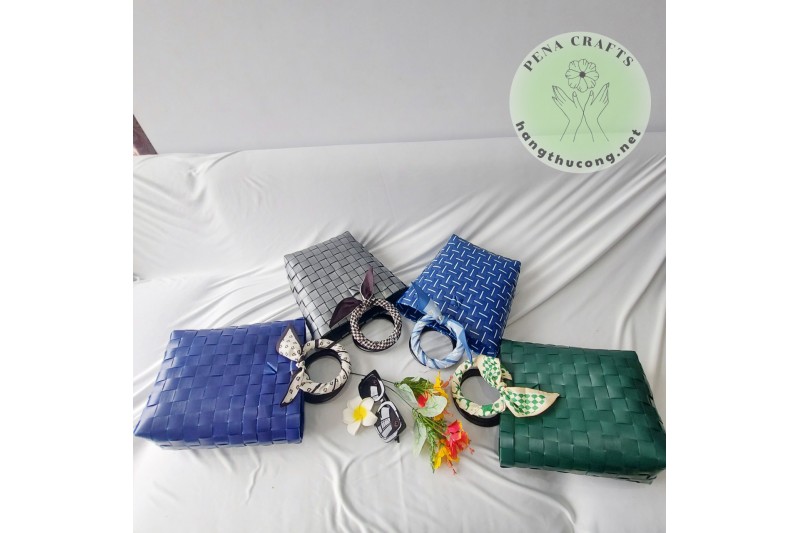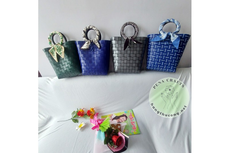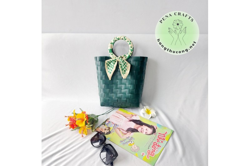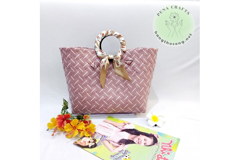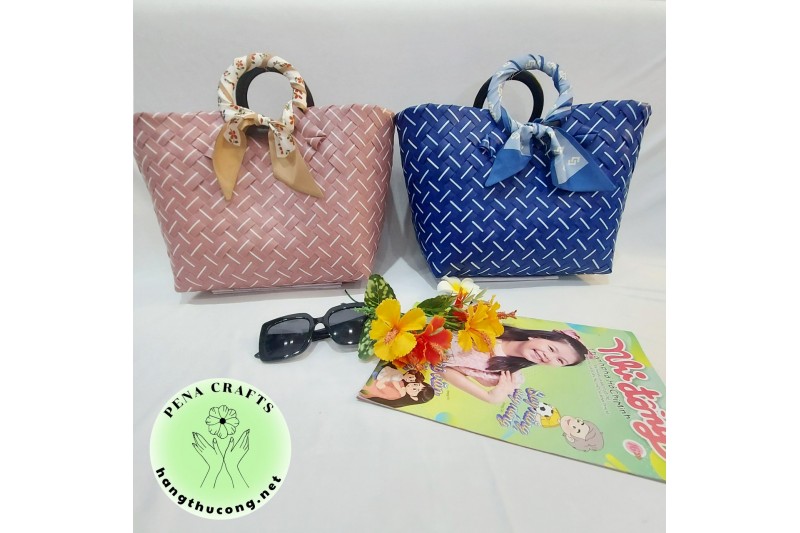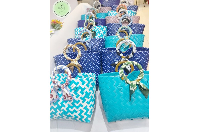 Giỏ quai gỗ trang trí nơ lụa. Đủ màu sắc. Chất liệu nhựa PP